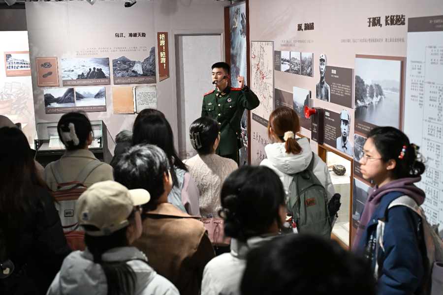 师生们一同参不雅了由中共一大牵挂馆和遵义会议牵挂馆聚拢推出的“万水千山只粗野——牵挂中国工农赤军长征告捷90周年”专题展。展览分为“江河·奔腾的意志”“草地·避让的但愿”“重山·招架的丰碑”三大篇章,活泼再现长征途中的关键战役与沉重险峻,陈赞中国工农赤军“更始想象高于天”的坚定信念和“赤军不怕远征难”的骁雄气概。