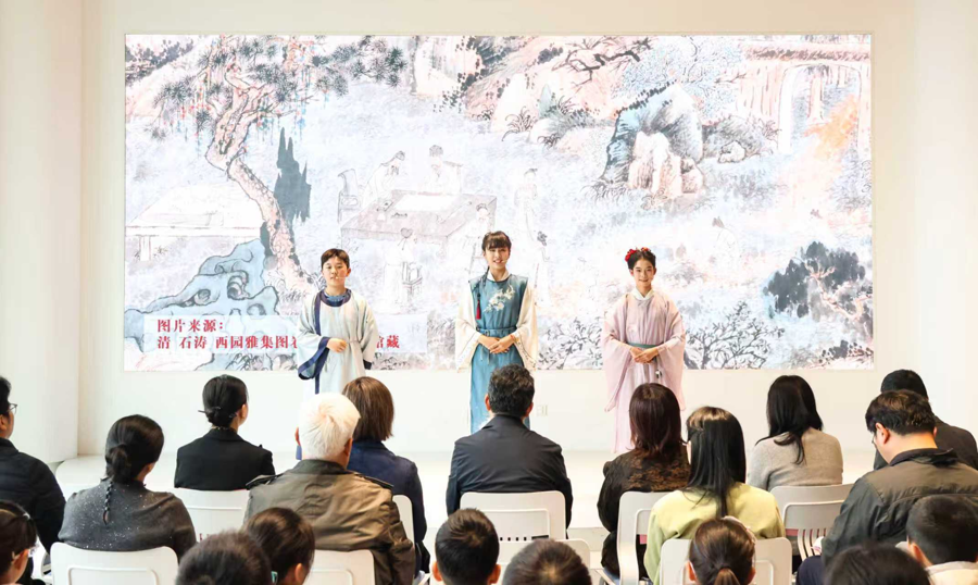 “两手交抓、拇指上翘、挺直腰背、躬身行礼……”同济大学从属澄衷中学六年龄的张权、谢茜婠、李佳颖三位同学身着宋代传统衣饰,现场示范“宋代叉手礼”。 “咱们此前在上博东馆古东说念主雅会研学课堂研习,不仅相逢了北宋名士考究无比,更读懂了中华礼节背后的家国情感。”