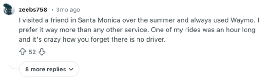 (图:不少曾经在其他城市使用过自动驾驶的东谈主在酬酢网站上共享我方的搭车训诲,并暗意纽约也应该引入。)