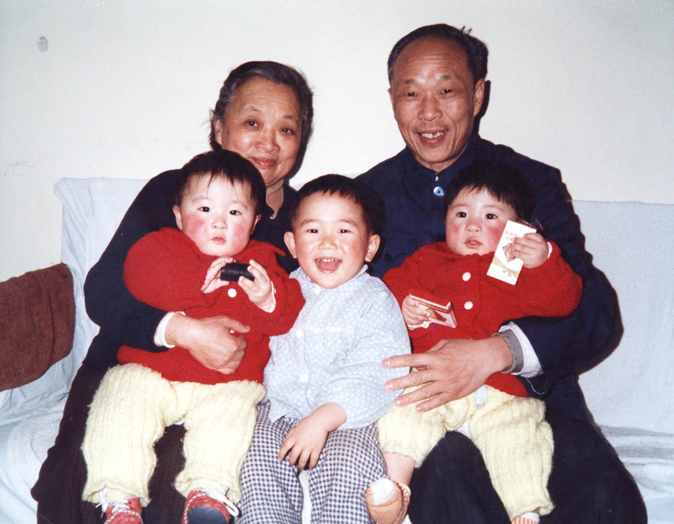 1987年,王振义夫妇和孙辈:王蔚(右一)、王悦(中)、王莹(左一)合影。