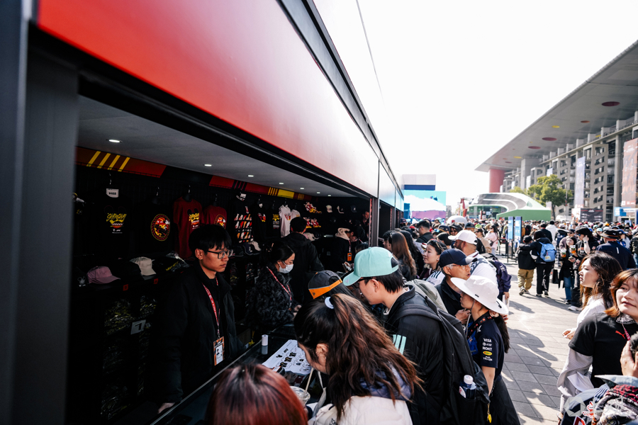 以往,莫得买到赛票的车迷,基本与官方操心品商店内的新款居品无缘,但本年的情况有了变化,除了自推出以来就受到好评的市中心区域快闪店,本年在水景广场等赛说念外围区域,出现了更多操心品售卖店。这个看似并不算相配大的改换,不仅让莫得赛票的不雅众有了买到满意居品的契机,也进一步促进了文商旅体展和会发展,更晋升了不雅赛体验,让干系方得到实委果在的收益,算得上多方共赢。赛期内,不论什么时段途经水景广场的操心品店,都能看到提着大包小包,笑脸盈盈走出来的主顾。