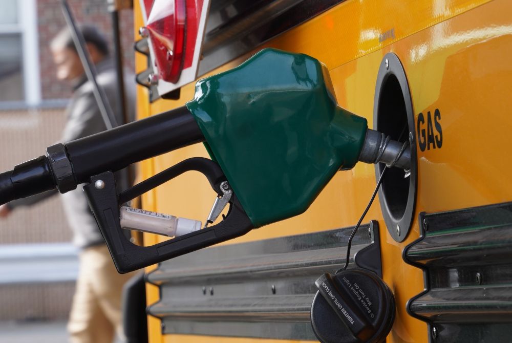 3月31日,一辆校车在好意思国纽约的加油站加油。新华社记者张凤国摄
