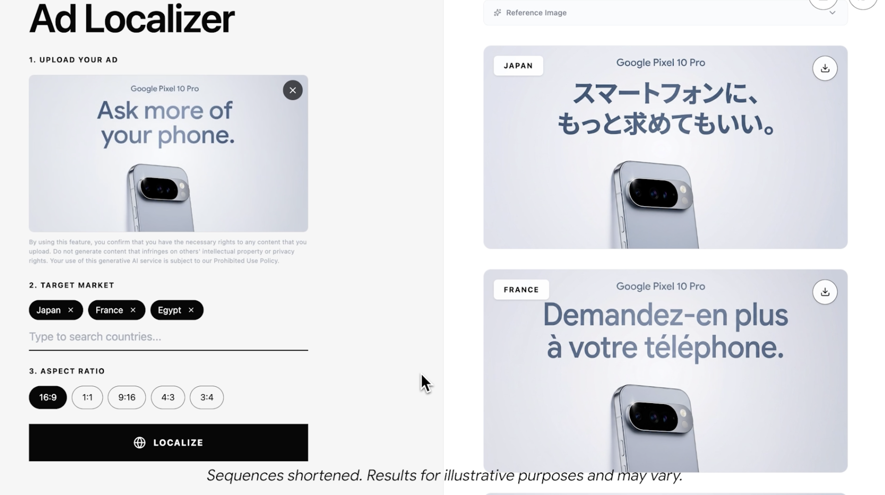 为了展示这些功能,谷歌确立了一款名为“环球告白腹地化器”(Global Ad Localizer)的演示应用,它不错将一个英语版块的图像告白翻译成不同话语,举例日文、法语等,以合乎国外市集,这对出海的企业来说有应用价值。