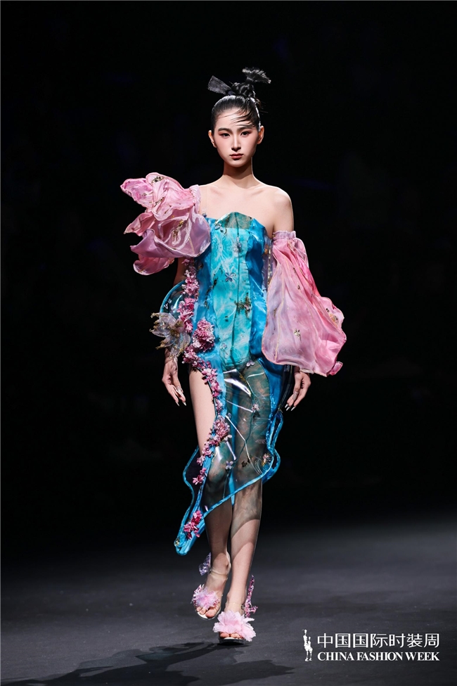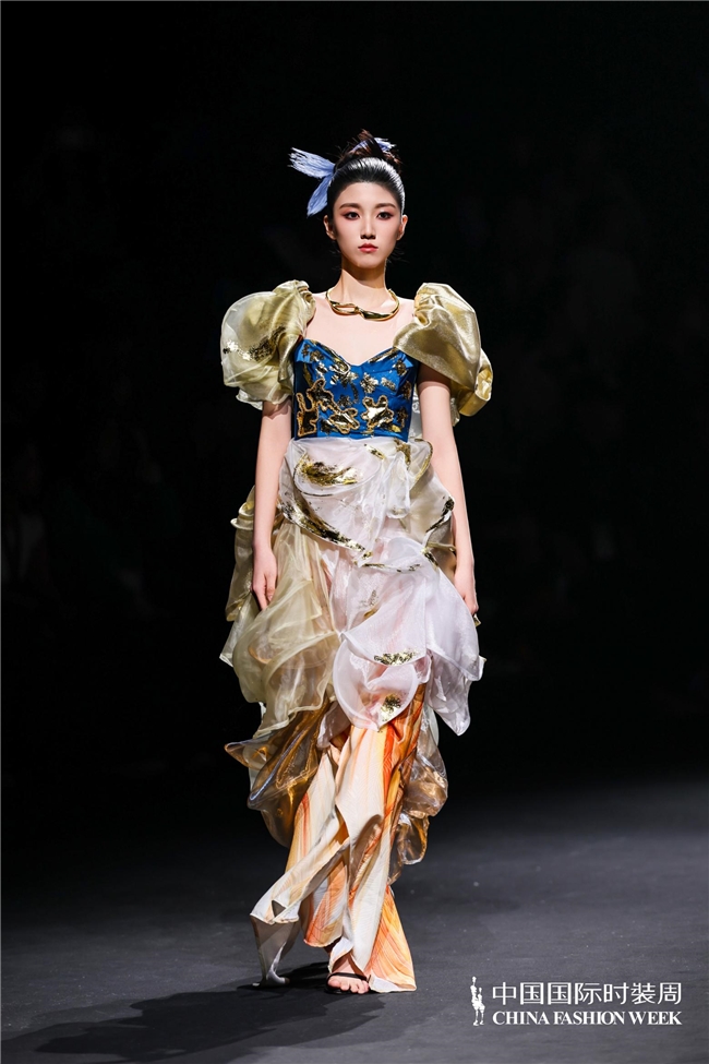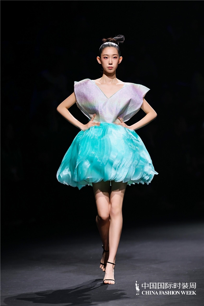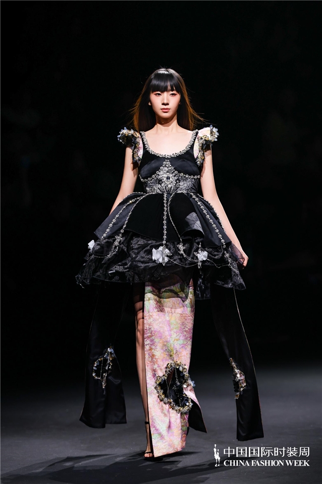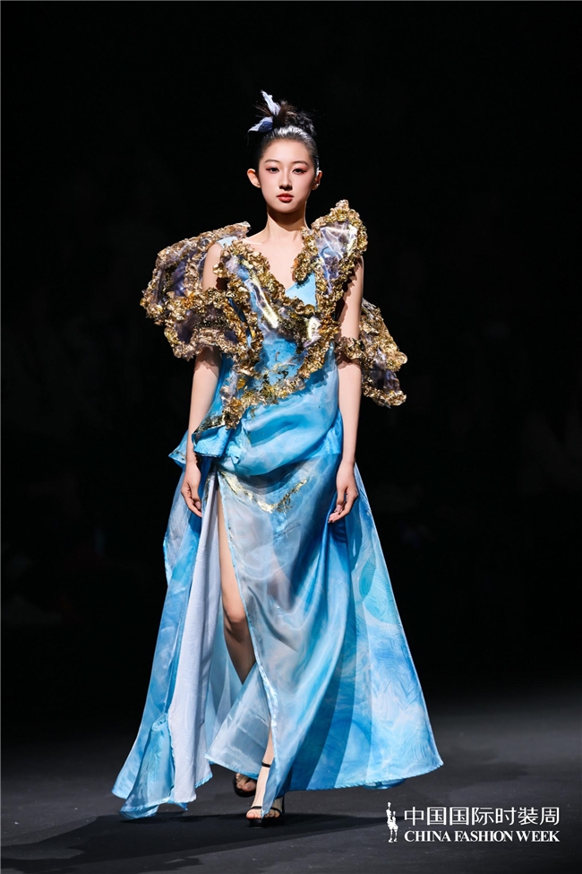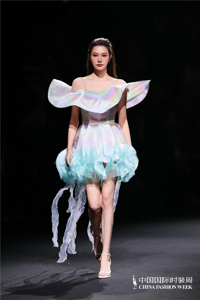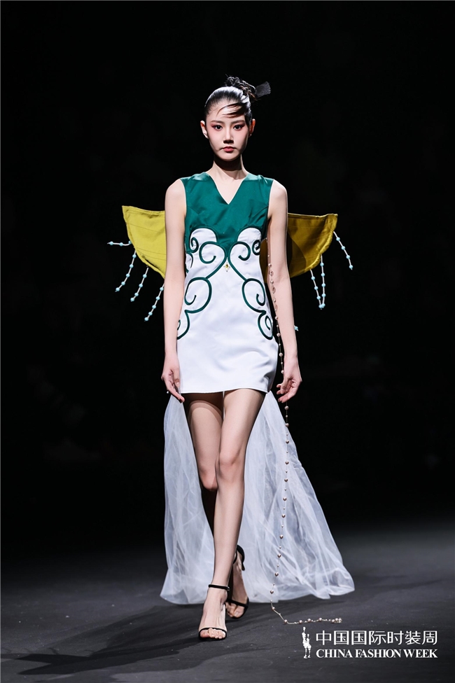 尤为值得关心的是,本场发布在童真设想除外更呈现出新一代筹画者对中华优秀传统文化的精良感知与创造性滚动。皮影、点翠、剪纸、苗绣、竹编等非遗武艺,被奥秘转译于面料肌理、廓形结构与遮拦细节之中;古诗词境界、云肩、襦裙、宋锦以及民族衣饰文化等传统好意思学元素,也在孩子们的笔触下得到了新的交融与重构。小小筹画师们以自己所处的时期特征与审好意思感知,赋予这些文化象征更微细、更鲜嫩的抒发面貌。现场还同步进行了小小筹画师荣誉发布与展示,进一步呈现了腾达代筹画力量的成长风姿与创作效果。