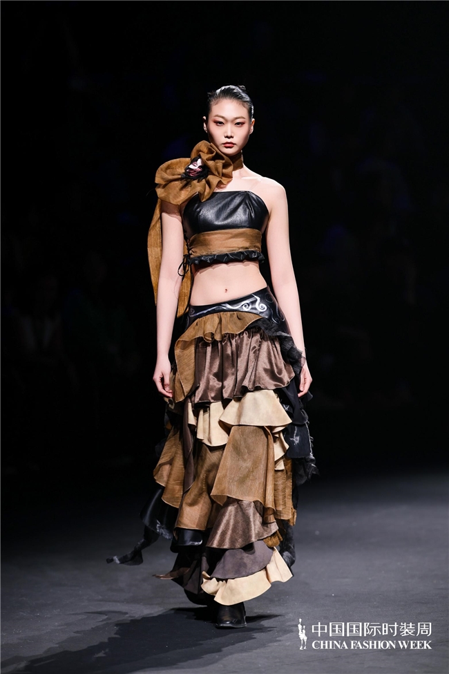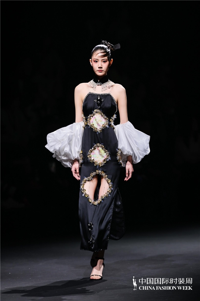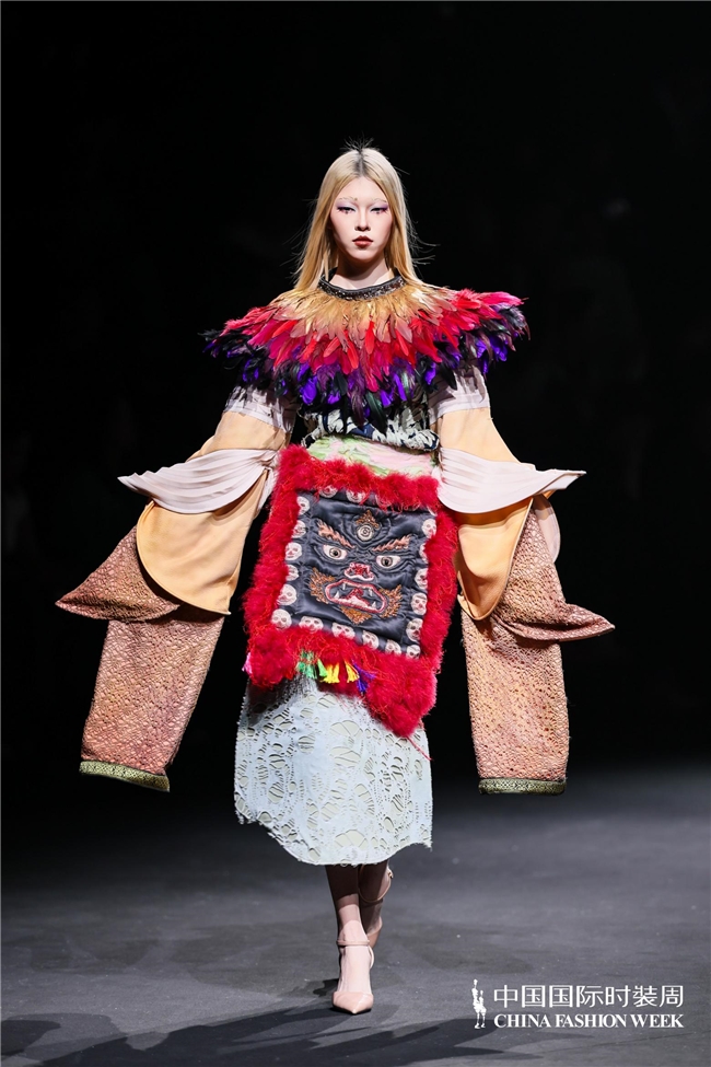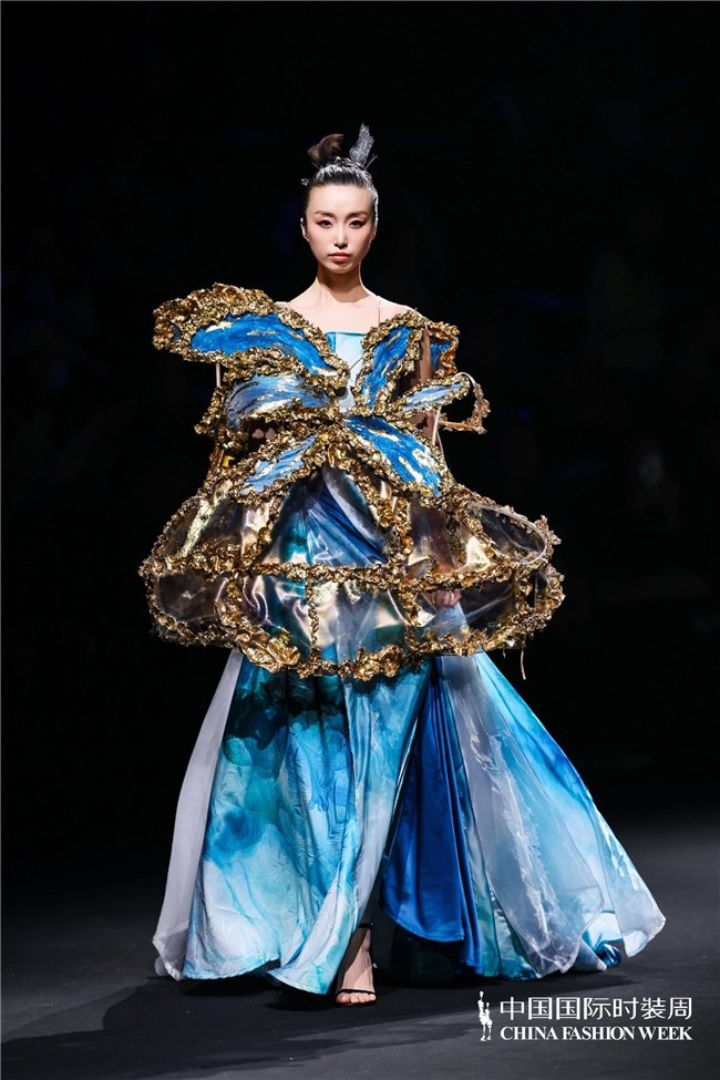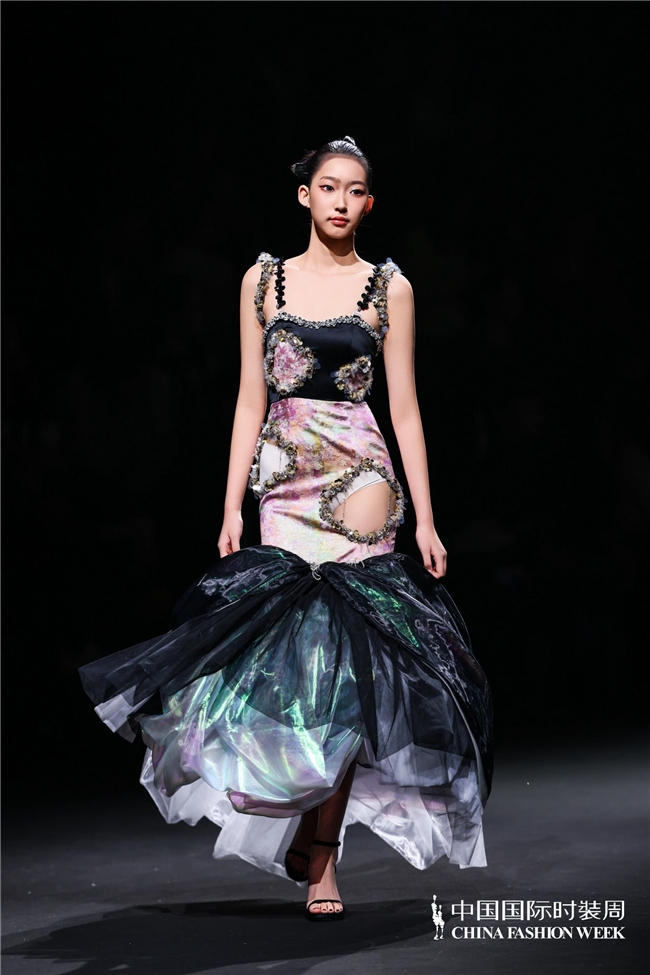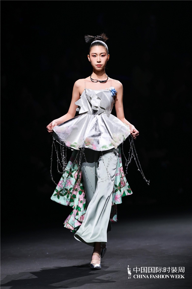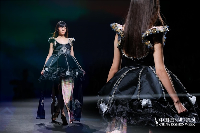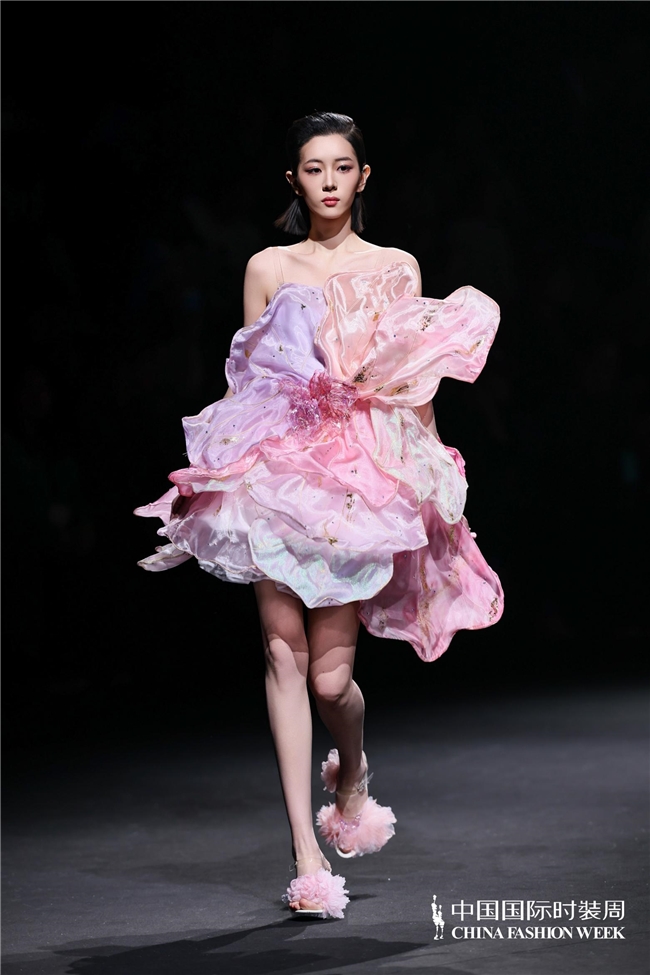 尤为值得关心的是,本场发布在童真设想除外更呈现出新一代筹画者对中华优秀传统文化的精良感知与创造性滚动。皮影、点翠、剪纸、苗绣、竹编等非遗武艺,被奥秘转译于面料肌理、廓形结构与遮拦细节之中;古诗词境界、云肩、襦裙、宋锦以及民族衣饰文化等传统好意思学元素,也在孩子们的笔触下得到了新的交融与重构。小小筹画师们以自己所处的时期特征与审好意思感知,赋予这些文化象征更微细、更鲜嫩的抒发面貌。现场还同步进行了小小筹画师荣誉发布与展示,进一步呈现了腾达代筹画力量的成长风姿与创作效果。
