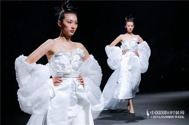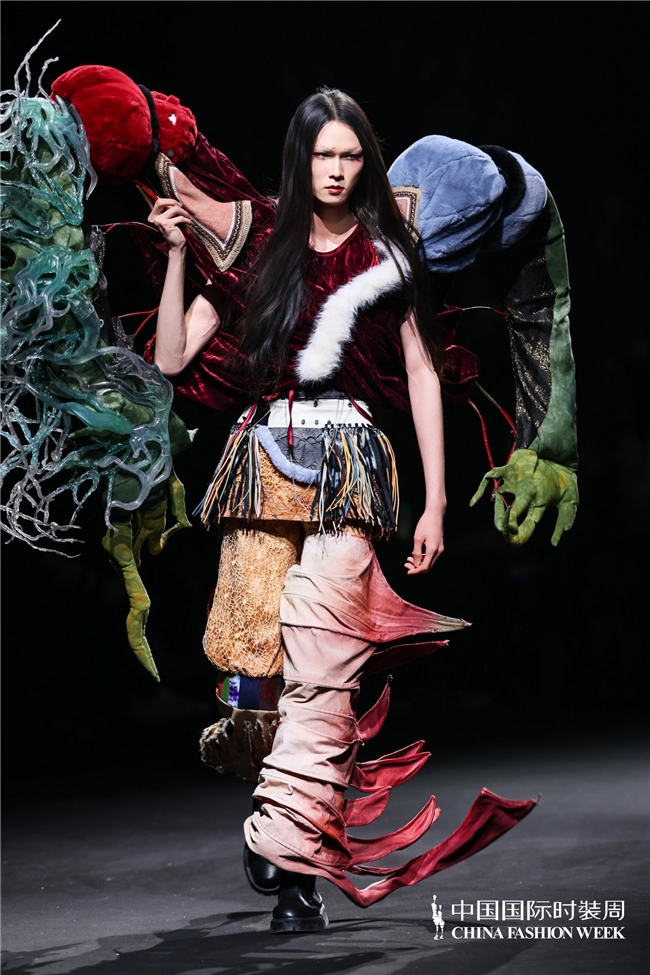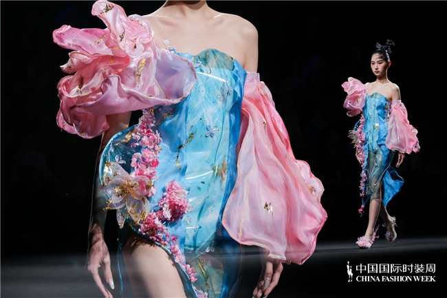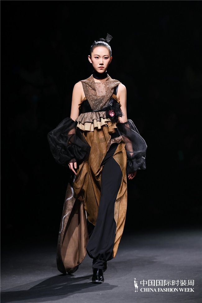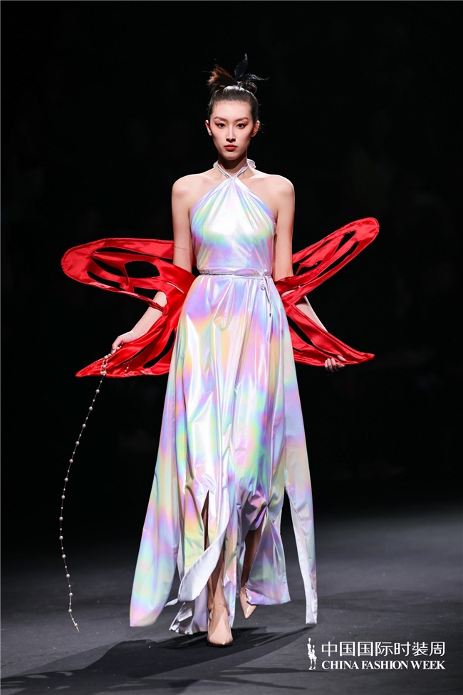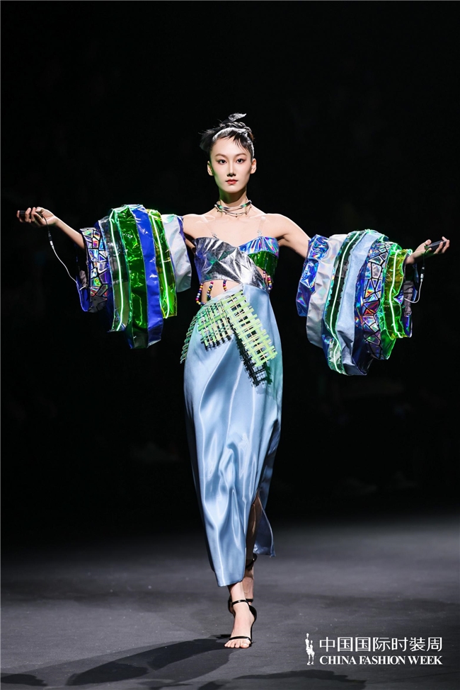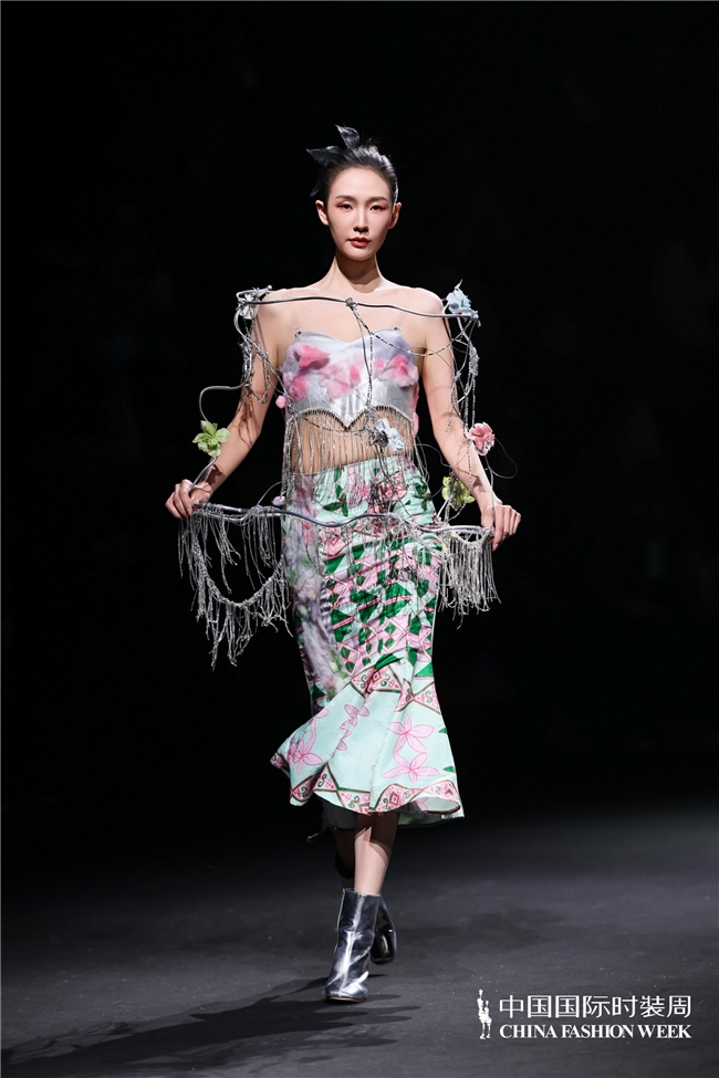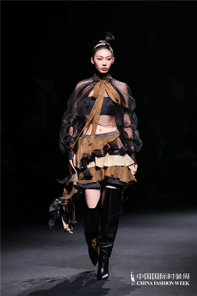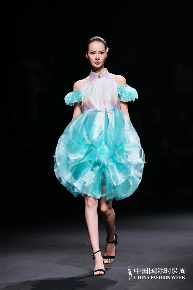 尤为值得关心的是,本场发布在童真设想除外更呈现出新一代筹画者对中华优秀传统文化的精良感知与创造性滚动。皮影、点翠、剪纸、苗绣、竹编等非遗武艺,被奥秘转译于面料肌理、廓形结构与遮拦细节之中;古诗词境界、云肩、襦裙、宋锦以及民族衣饰文化等传统好意思学元素,也在孩子们的笔触下得到了新的交融与重构。小小筹画师们以自己所处的时期特征与审好意思感知,赋予这些文化象征更微细、更鲜嫩的抒发面貌。现场还同步进行了小小筹画师荣誉发布与展示,进一步呈现了腾达代筹画力量的成长风姿与创作效果。
